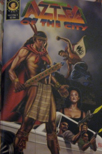 One of the comic books that was out promoting itself was one called “Aztec of the City.” I popped open the book and flipped through a few of the pages to look at the art work. It’s well drawn and all, but when I read the first two pages, I felt myself rolling my eyes. I know the cover should have given me an idea of what to expect, but silly me, I wasn’t paying that much attention to it. I find it “boring” to find yet one more story where the Latino hero, has to mention that he did time in jail and no one came to see him and how hard it was to survive. It’s a story that’s used too often, and yeah, I get bored with it. For once, I just want to see someone kick ass because of injustice that’s been witnessed rather than having had some horrible incident drive them to it, like Batman watching his parents get killed. Next! That’s all I have to say about this comic. Sorry Aztec writers.