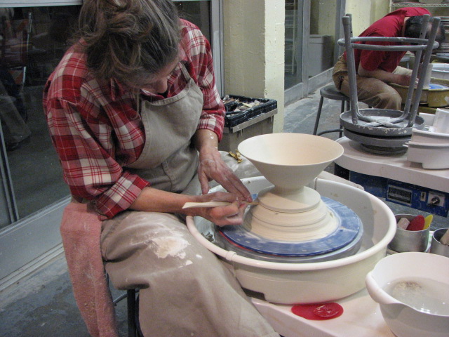 My last stop of the night was at Higher Fire. I watched a lady make her ceramic bowl and actually cut it off the hunk of clay she was using. The provocative and funny banter between her and the two fellow pot makers made me want to sign up for a class just to be in on the fun.