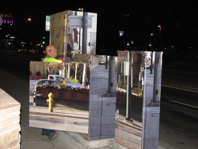 At the San Jose Institute of Contemporary Art, I was fascinated with many of the pieces in both of the exhibits. I don’t know what it is that draws me into “Dos Mundos” the works of Tim Craighead, but I feel a sense of disorientation. Not in any sense where I feel lost, or scattered or don’t know where to focus my attention, but more like I am swimming in main color and have to turn to look at each of the images on the canvas. That being said, I was so fixated on the constant presence of some of the symbols on his works, that I was sure that they had to have some importance to the painter. So I found a liaison and asked what the significance of these images were since they were repeated in so many of the pieces represented in the show. Now, I don’t want to sound ungrateful that the man tried hard to explain something not at all related to my question, but I would have preferred him to say “I don’t know.” Instead, he stood there stating the obvious for 15 minutes and I didn’t want to be rude and just walk away. Because of my bad timing, I never got back to the MACLA center for the performance. Crap!