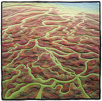 It looks like rivers and canyons and the topography of the piece just makes me want to trace all the green veins and follow them like a maze.